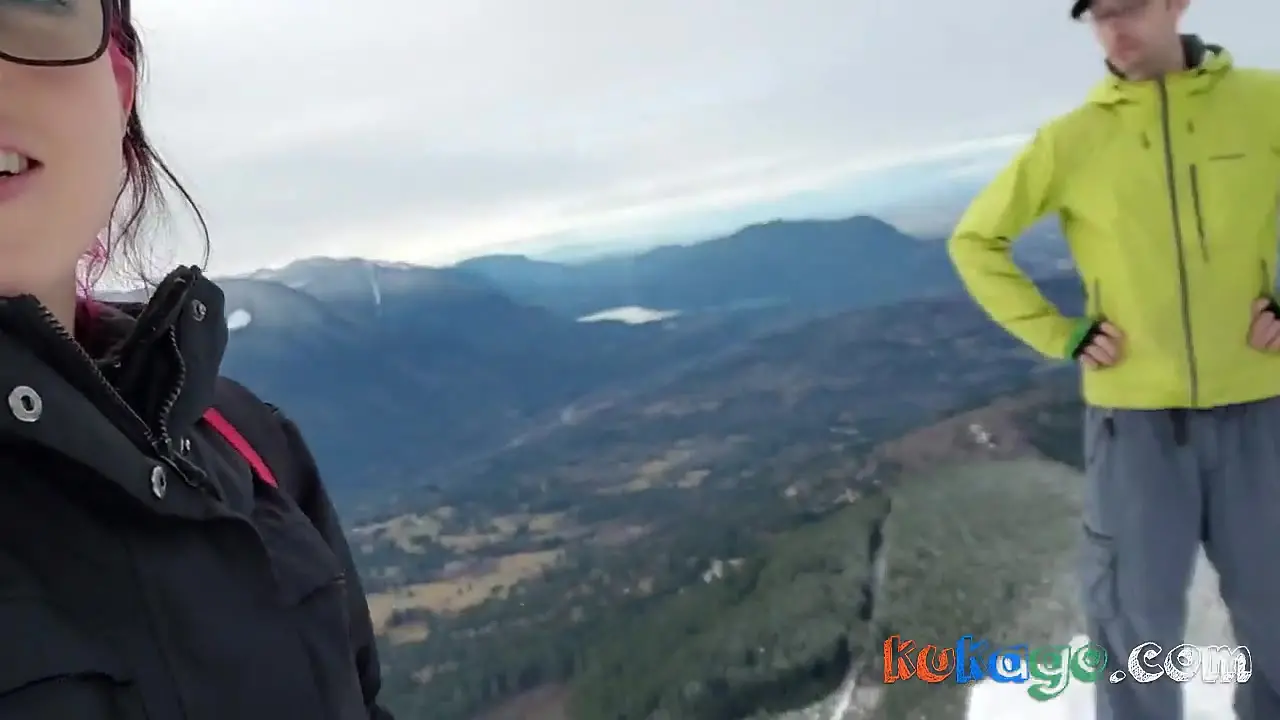 A nerdy MILF with impressive muscle shows off her naughty side as she sucks a stranger's dick in the mountains. They film their risky public nudity and she gives a passionate blowjob, all while surrounded by nature.